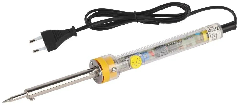 Электропаяльник с регулировкой температуры ЭРА PL-R-60W предназначен для пайки медных проводников и монтажа электронных компонентов в электротехнике. Мощность паяльника 60 Вт он отлично подойдет как для профессиональных монтажных работ, так и для бытового использования. Функция регулировки рабочей температуры жала в диапазоне 200...450°C позволяет подбирать оптимальный режим для различных видов пайки. Корпус паяльника выполнен из ударопрочного, термостойкого пластика. Паяльник оснащён долговечным жалом из меди со специальным защитным покрытием. Конструкция паяльника позволяет при необходимости произвести замену жала.
